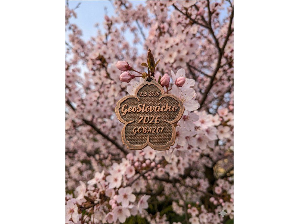 S ohledem na termín konání našeho megáče jsme se rozhodli věnovat letošní geocoin květu ovocného stromu. Má podobu nádherného třešňového květu a ve spodní vrstvě jsou viditelné drobné včelí plástve. Květen je měsícem lásky, a rozkvetlé slovácké sady k ní neodmyslitelně patří. Aby nezůstalo jen u krásy do vitrínky, tento náš květ můžete využít jako praktický přívěsek na klíče (či jinam) a mít tak vzpomínku na GeoSlovácko neustále u sebe. Pro tento účel si můžete přímo u nás v e-shopu k minci dokoupit i praktický kroužek na klíče.